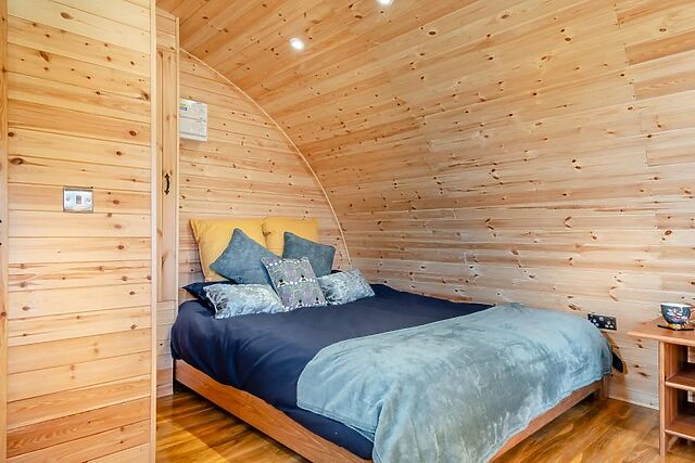 This features a cosy sleeping area with a king-size bed, and a stylish contemporary kitchen housing two portable single ring induction hobs, microwave and fridge, plus all the utensils needed to get cooking. A small table and chairs slot neatly into place and there’s a sleek shower room and WC.