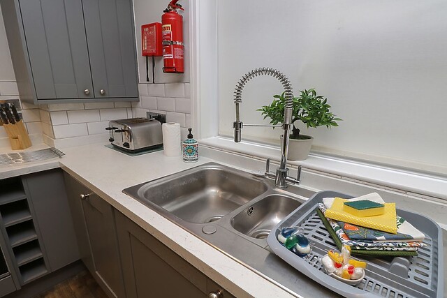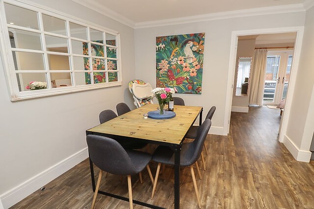 The sitting area, also part of this open-plan space, offers a relaxing area to unwind with all the family in front of the TV, perfect for a movie marathon. On the ground floor, a double bedroom awaits, offering a private retreat with its own TV and direct access to the rear garden.