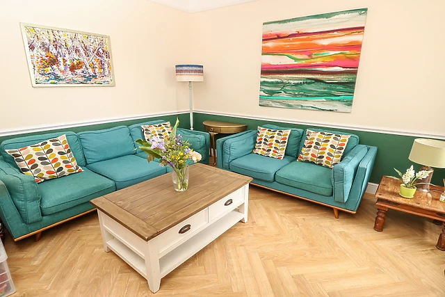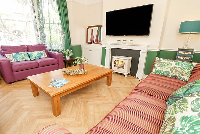 The property boasts two cosy sitting rooms, each with a TV, ensuring ample space for relaxation and entertainment.