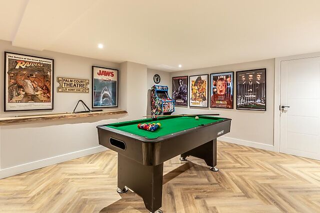 Completing this level is a handy office space. Upstairs, discover four stunning bedrooms (a super-king-size, two king-size, and a double), one of which has an en-suite bathroom.