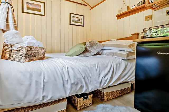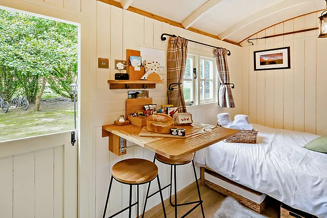 - Discover beautiful walking and cycling routes, including the Red Squirrel Trail, right on your doorstep. Rest and recharge - The shepherd’s hut features rustic charm with stylish details, including shutters and cosy lighting.