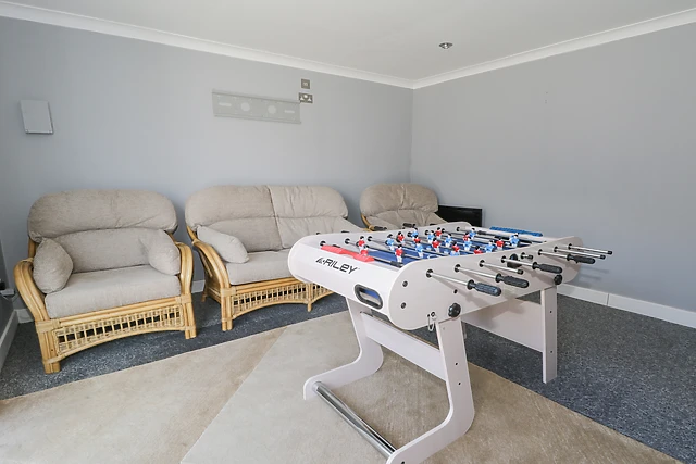 Start your day in a well-equipped kitchen/diner, perfect for cooking up a delicious breakfast before heading out to explore the local area. After a day out, take a moment to rest in the sitting room with its contemporary furnishings, or challenge your friends to a game of table football or table tennis or improve your snooker or pool skills in the garden room.