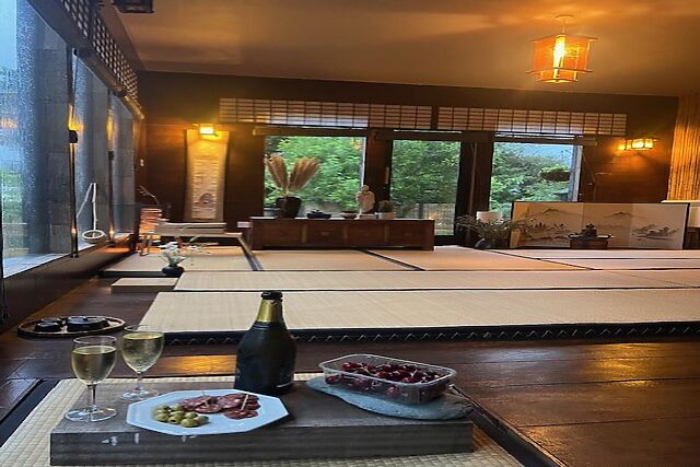At bedtime, the king-size bed is ready for you at one end of the room, with tatami mats and a futon rather than a mattress. From here you can gaze out at the beautiful view and spend time simply doing nothing.