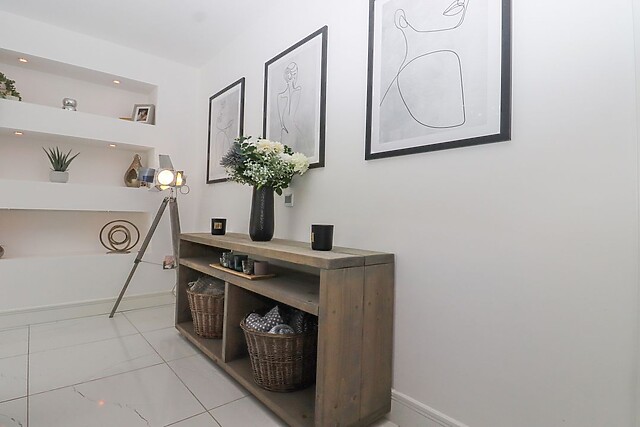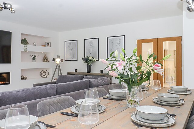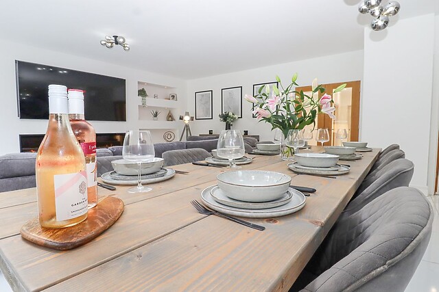 After dinner, retire to the sitting area, where you can snuggle up in front of the Smart TV and impressive electric fire to stay toasty. A utility room houses a washing machine and tumble dryer, catering to all of your laundry needs during your stay.