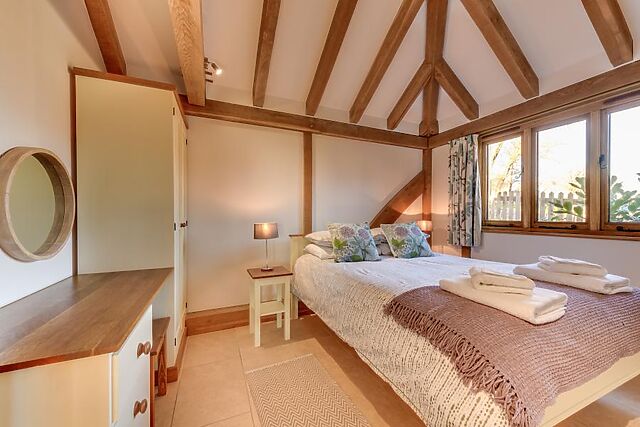 It was also built in green oak. This delightful property sleeps four people in beautifully furnished accommodation, with a cosy wood burning stove, timbered vaulted ceilings and stunning views out over Romney Marsh and the Owner's vineyards.