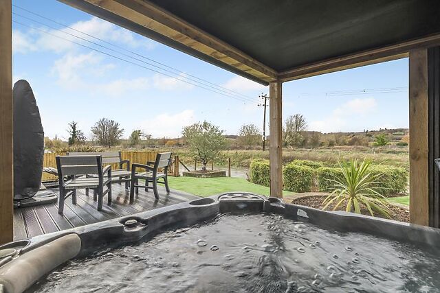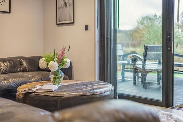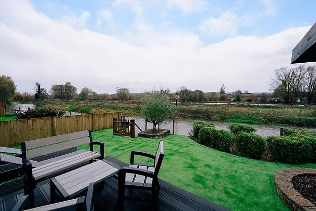 The contemporary shower room is a treat in itself, complete with a rainfall shower. Doors from the main living space open directly onto the raised decked terrace, where you can sip your morning cuppa or head to the loungers to relax in the sunshine and watch the river go by.