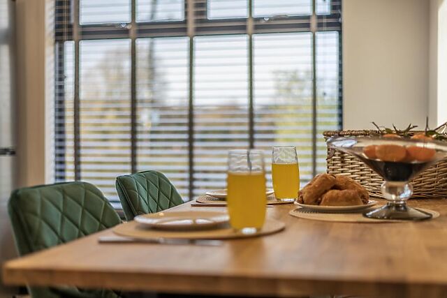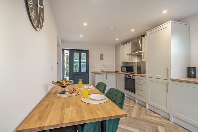 Bi-fold doors stretch across the rear wall, framing those pretty river views. The sleek kitchen has everything you need for preparing cooked breakfast and delicious dinners, to be enjoyed in the stylish dining area.