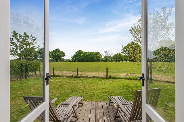 Churchlands Barn in Tenterden, Kent, is a stunning barn conversion that sleeps up to eight people. This luxurious accommodation offers an open-plan design, galleried landing, and vaulted ceilings, creating a spacious and airy environment.