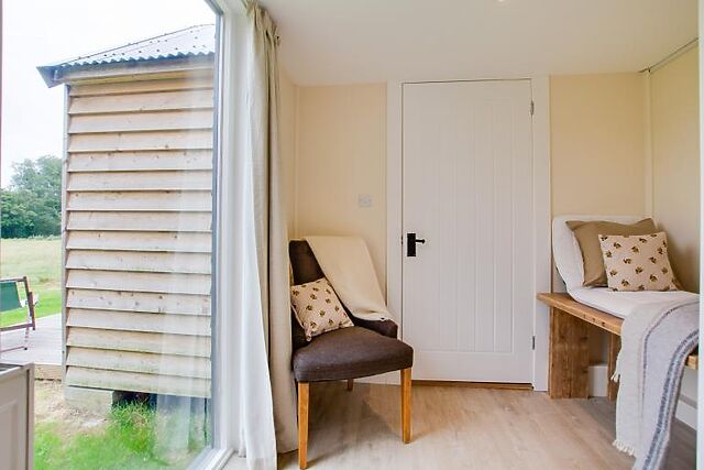 Set amid 10 acres of picturesque land, The Burrow is part of a working cattle and sheep farm. The open-plan lounge, kitchen, and dining area provide a welcoming space to relax. Enjoy the rural views from the Scandi-style sofa and armchair, or step outside through the French doors to the private seating area.