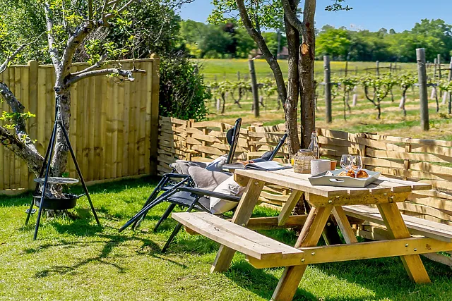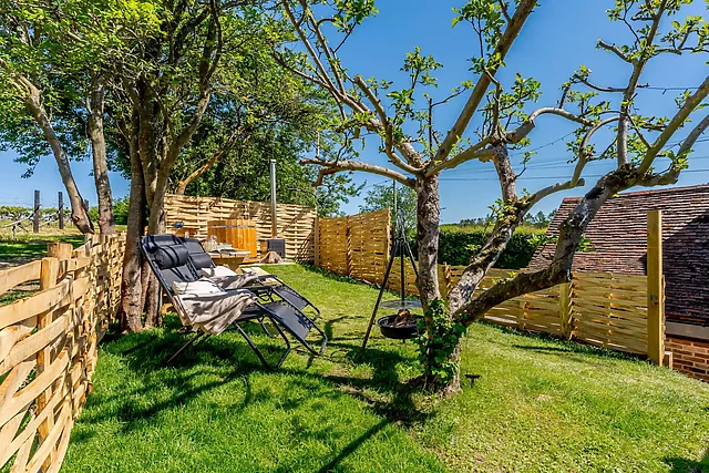 Escape to The Grape Escape, a tranquil retreat nestled in the heart of a working vineyard in Kent's Area of Outstanding Natural Beauty. This idyllic cottage is perfect for couples seeking a romantic getaway, complete with a wood-fired hot tub to soak in while enjoying the spectacular countryside views.