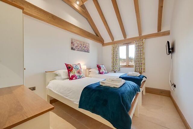 The Old Cowshed in Tenterden, Kent, offers a luxurious escape in the heart of the countryside. This beautifully converted eco barn sleeps four people and features two spacious bedrooms and two modern bathrooms. The accommodation is all on one level, making it accessible and convenient for everyone.