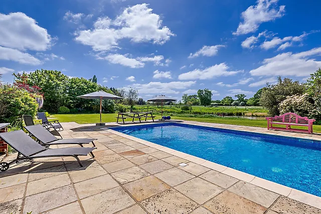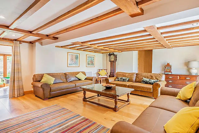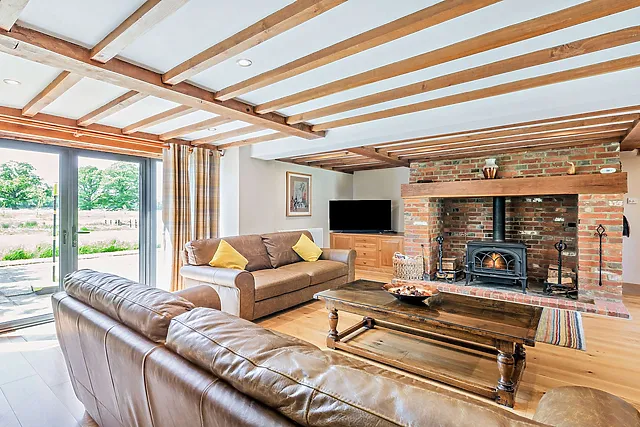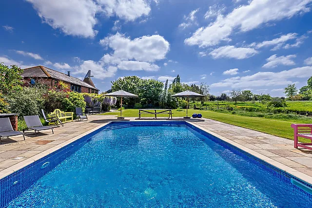 Churchlands Barn in Tenterden, Kent, is a stunning barn conversion that sleeps up to eight people. This luxurious accommodation offers an open-plan design, galleried landing, and vaulted ceilings, creating a spacious and airy environment.