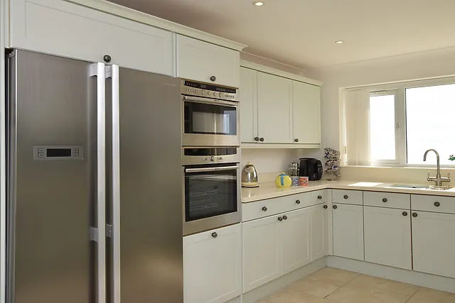 The cottage is well-equipped with modern amenities including an electric oven, induction hob, American style fridge/freezer, coffee machine, dishwasher, and utility room with additional appliances, ensuring a comfortable and hassle-free stay.