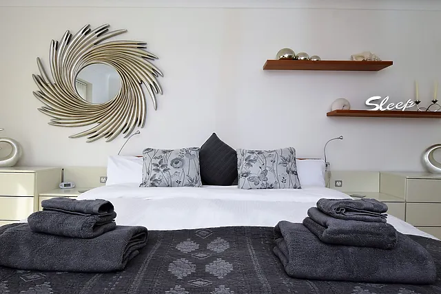 The accommodation comfortably sleeps up to 9 guests in 5 elegantly furnished bedrooms, suitable for large families or groups.