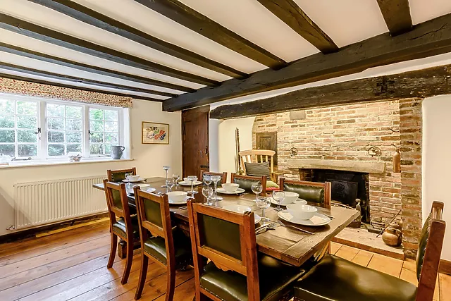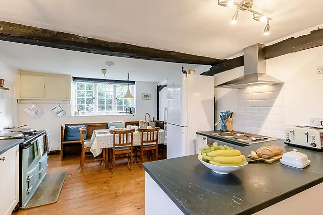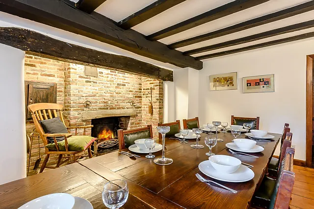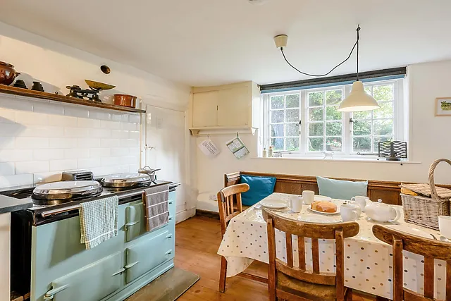 The accommodation exudes rustic charm, featuring an Aga, a cosy snug that doubles as a downstairs bedroom, and a formal dining room with an inglenook fireplace.