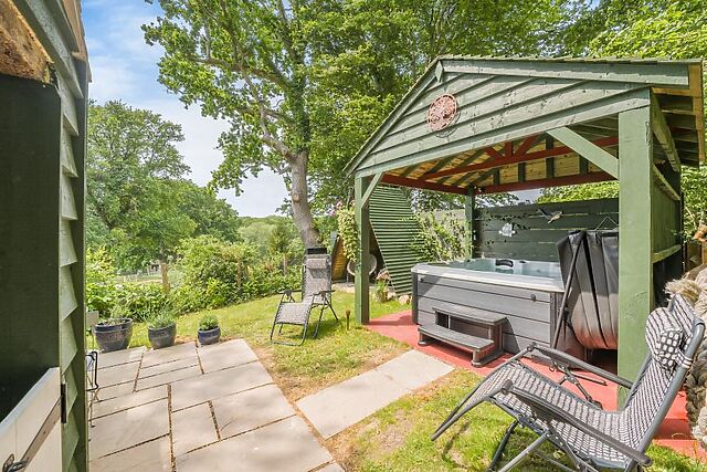 Edged by fields, the garden here is charming and sanctuary-like, with a patio, charcoal BBQ and quirky covered seating area. For the ultimate in laid-back leisure, fire up the hot tub – it’s undercover for year-round use.