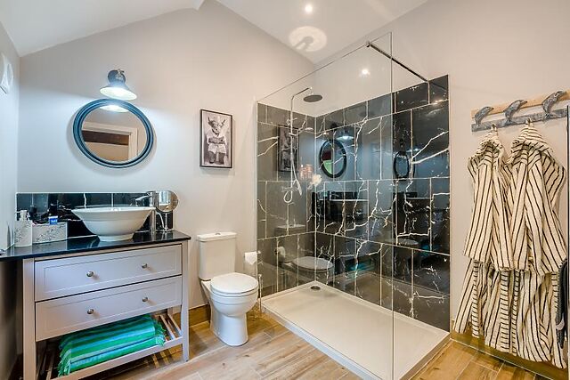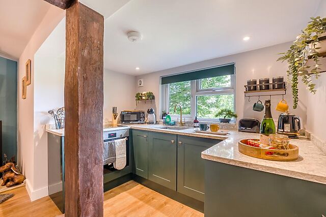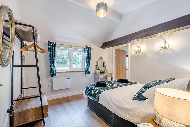 There’s a Smart TV so you can stream your movie favourites. When you’re ready to sleep, a fabulous king-size bedroom beckons, complete with more exposed beams and a chic en-suite shower room.