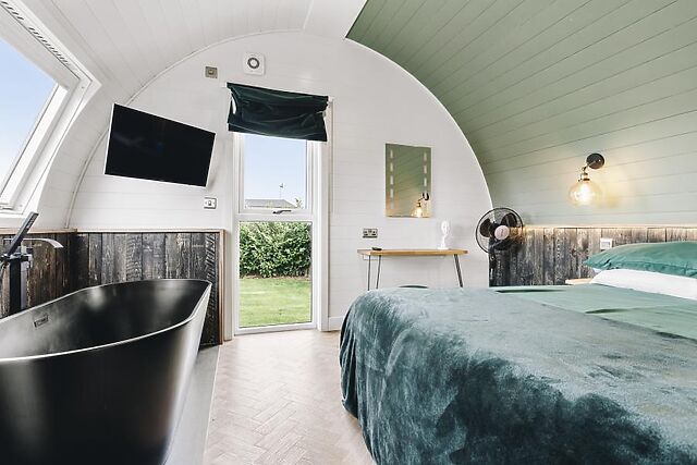 For coastal days out, seaside Littlehampton (6 miles) has two beautiful beaches plus a bustling harbour and marina. One of an exclusive collection of adult-only holiday properties, this studio-style log cabin combines natural materials, tactile fabrics and warm tones to create a sanctuary-like escape.