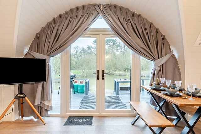 Step outside onto the decked area, where sofa seating and a biofuel heater make chilly evenings a delight. Fire up the BBQ for al fresco dining or soak in the hot tub, taking in views over the lake and surrounding countryside.