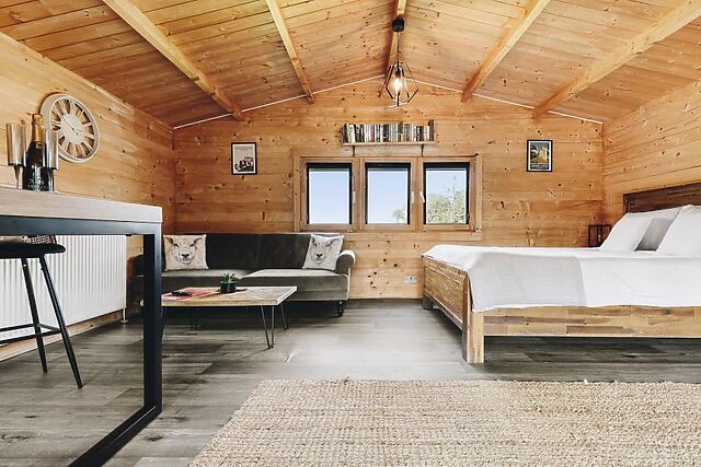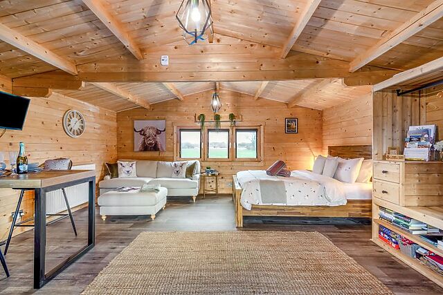 Head inside and be greeted by a studio-style living space that combines a lounge/kitchen/diner with a restful king-size bed. Here, Scani-inspired features blend with modern comforts for a relaxed stay.