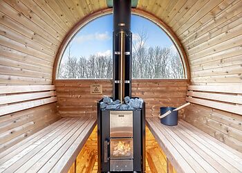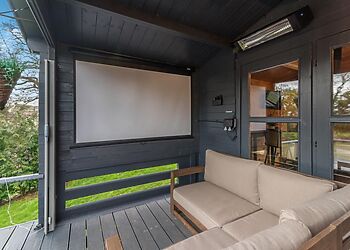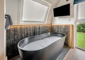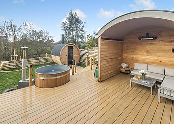 The Beach Hideaway in Lancing, Sussex, is a luxurious cottage that sleeps four. It features two double bedrooms with en-suite shower rooms, a spacious open-plan living area, and a tropical-themed enclosed garden with a hot tub and infra-red sauna. Located just 200 steps from the beach, it's perfect for a seaside escape.