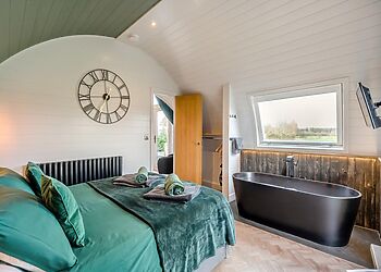Nestled in the peaceful West Sussex countryside, this stylish shepherd’s hut offers couples a cosy and romantic escape just a short stroll from the village pub. Nature enthusiasts will adore a visit to the WWT Arundel Wetland Centre, where wetlands, lakes and abundant birdlife await.