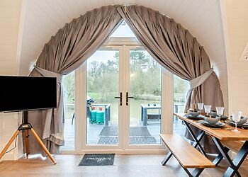 Reconnect with nature and your loved one with a stay in this beautifully crafted lakeside cabin set on a working farm in the village of Walberton. Wander less than a mile to a popular village inn, serving locally sourced food to eat in or take away – perfect for the nights you don’t fancy cooking.