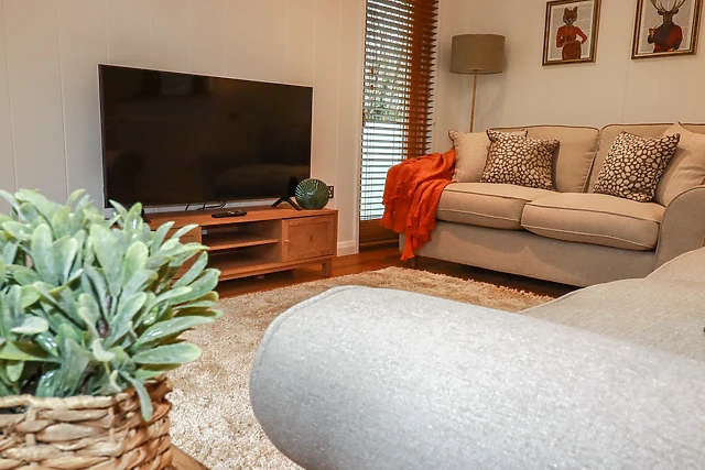 Inside this welcoming lodge is a delightful open-plan living area with a well-equipped kitchen, a dining area and a pleasant sitting area, from where you can relax with your loved ones. The bedrooms at your lovely lodge consist of a double with a TV and a convenient en-suite, and a twin, along with a main bathroom with bath and shower over.
