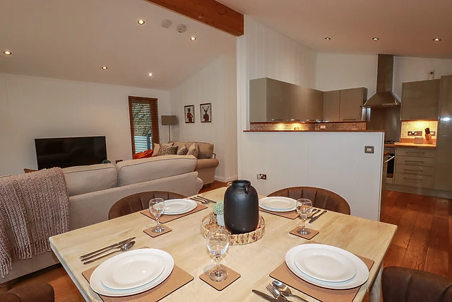 Step outside on a sunny day and enjoy the decked terrace area. Unwind with a drink or dine alfresco and be sure to relax in the bubbling hot tub, a luxury bonus at this delightful lodge.