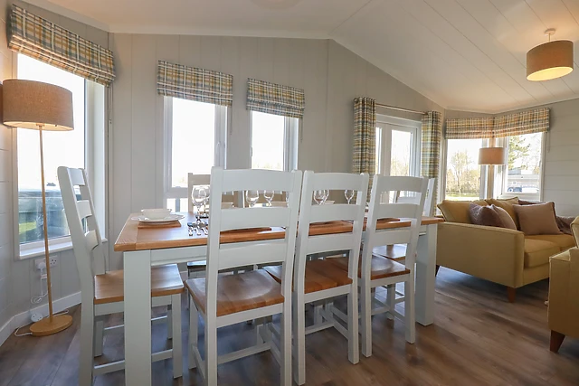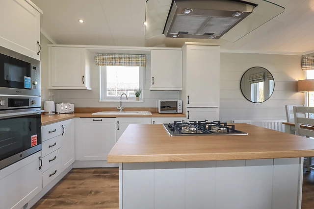 Step into a spacious and sleek open-plan living space with a fully-kitted kitchen where you'll whip up feasts while your loved ones either lounge on the plush sofas in front of the Smart TV or enjoy a few rounds of card games around the dining table. Tuck into your meals outside on the terrace when the weather allows, then watch the kids run and play on the communal lawn area while you take a dip in the hot tub.