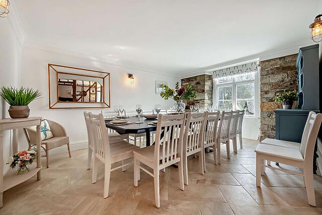 The main house features seven bedrooms, each with its own unique charm and en-suite facilities. The 'Seahorse' and 'Stingray' rooms offer super-king-size beds and lovely views. The 'Pirate' room is perfect for children, with three single beds.