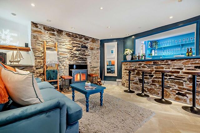 As you step inside, you'll be greeted by exposed timber beams and inviting social areas. The snug with a Smart TV and comfy sofas is ideal for relaxing, while the lounge boasts a wood burner and a bar for enjoying a Cornish tipple.