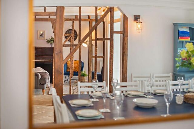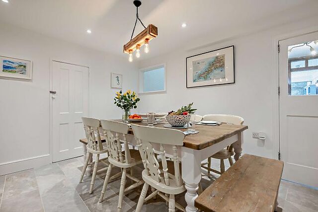 As you step inside, you'll be greeted by exposed timber beams and inviting social areas. The snug with a Smart TV and comfy sofas is ideal for relaxing, while the lounge boasts a wood burner and a bar for enjoying a Cornish tipple. The formal dining room and high-spec kitchen provide ample space for family meals.