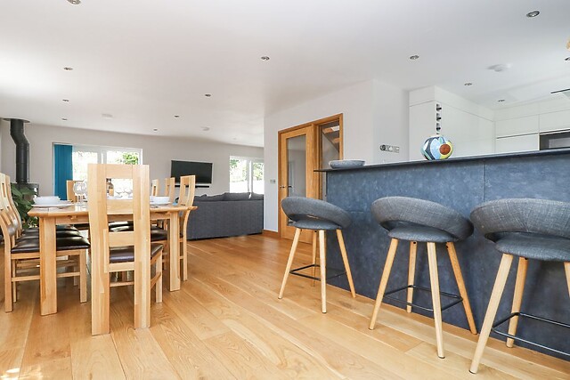 The accommodation is arranged over three floors with a vast open plan living space on the middle floor where you can gather around the table, chill out on big corner sofas by the wood burner or spill out onto the water facing balcony stretching the width of the house. Kids of all ages will be entertained with a fabulous cinema room on the ground floor with 65'' screen and squashy sofas.