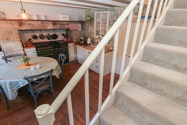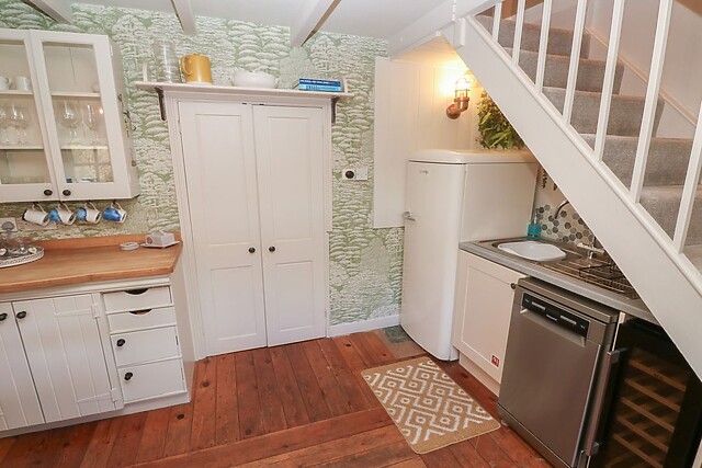 With a stylish and traditional interior boasting a fusion of style and charm the property boasts a generous garden which hosts a private, wood fired hot tub, relaxation and comfort are guaranteed in this lovely space. From the enclosed front garden, step into the hallway leading to the cosy sitting room, with wood burner for those snug evenings in front of a fire, here you will find board games and a Smart TV tucked into the cupboard.