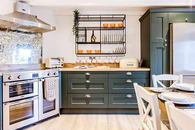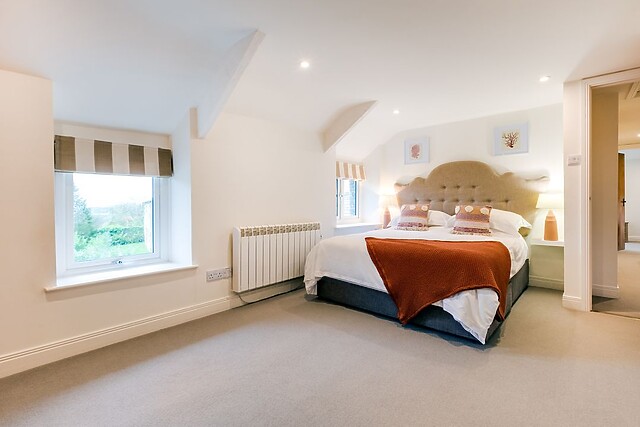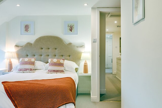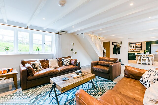 After dinner, make your way through to the inviting sitting room, where you can sink back into the plush seating in front of the alluring woodburning stove, as select your favourite film from the Smart TV. Follow the stairs up to the first floor, where you’ll find a sleek shower room for freshening up at the end of the day, and three tastefully decorated bedrooms, a super-king-size with en-suite shower room, and two super-king-size with zip/link.