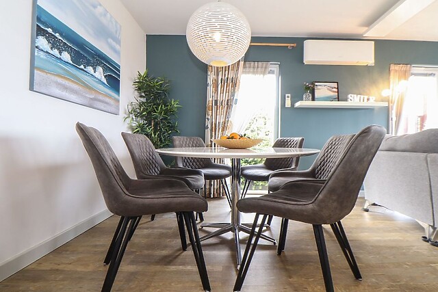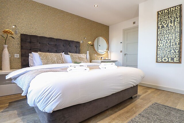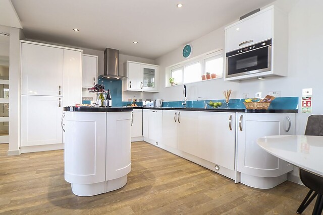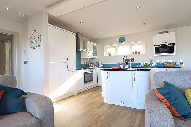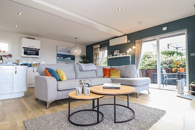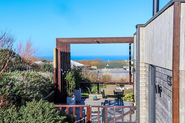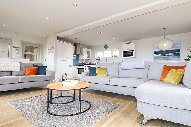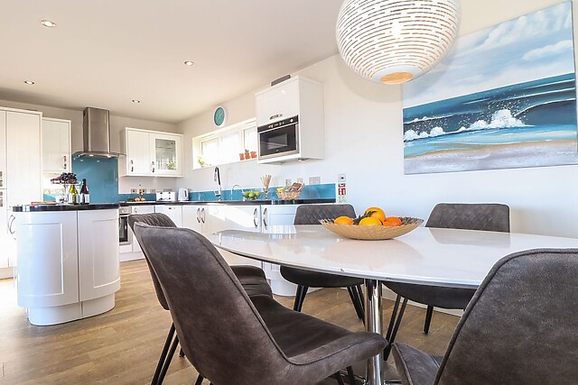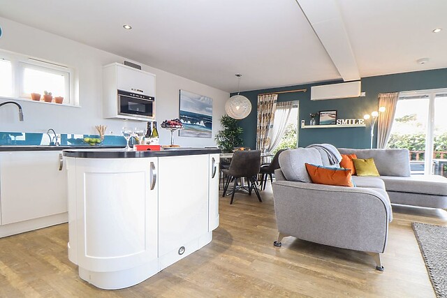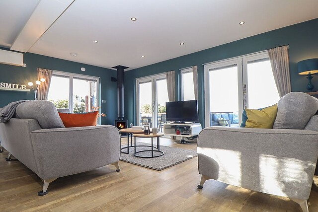 On the property's decked veranda, you'll find seating to enjoy good food in the sun and a hot tub with the coastline backdrop. Step inside to find a well-presented, contemporary, open-plan living concept with a seating area and woodburning stove, perfect for those quiet evenings in.