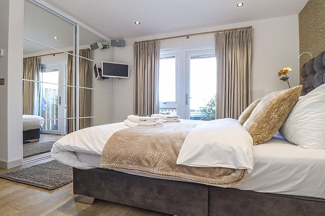 A sleek bathroom has an embedded TV, and three beautifully-styled bedrooms, all boasting their own TVs. Tear yourself away from your haven to visit the rest of the park and village where you'll be spoilt for choice of eateries and activities; tuck into a delicious meal at Portreath Arms pub with its beer garden overlooking the sea, head to Pod Café Portreath for some delicious breakfast and local treats such as Cornish pasties and ice cream, and bask in the sun on the soft, fine sand at Portreath Beach.