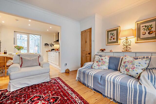 Adjacent to this is a glorious sunroom, a wonderful place to sip your morning tea basking in the warmth of the sunlight. When day turns to night, choose from three sumptuous bedrooms, served by two chic shower rooms – a super-king-size room, a king-size and a welcoming bunk bedroom.