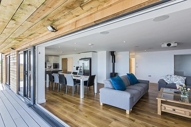 This is a stylish and spacious property in a thriving location, perfect for large families and groups to come and experience this fantastic location. Boscarne is set with stylish wooden flooring throughout and the comforting sitting room is ideal for any weather, on the colder days you can sit on the sofa with the projector on and the woodburner going, if it's hot then open the bi-folding doors and enjoy a family meal with the fresh air flowing through.