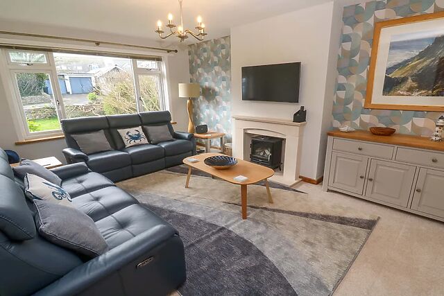 The oven and hob invite home-cooked meals, while the kettle and toaster add the finishing touches to slow mornings and relaxed evenings. The sitting room offers a warm retreat, with soft, power reclining seating and a Smart TV for laid-back evenings after days spent exploring.