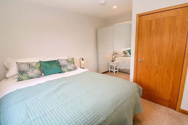 When it’s time to unwind, an en suite super king bedroom, a king bedroom and a twin bedroom offer restful spaces to recharge, each simply furnished for comfort. The bathroom offers a bath and shower, ideal for easing into the evening or refreshing before heading out.