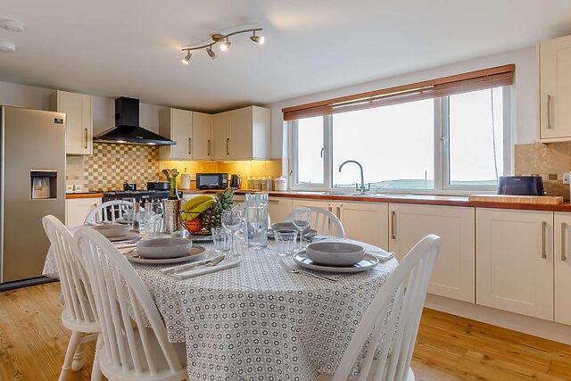 Located opposite this and providing further seating is a cosy snug and this also includes the fabulous feature of a wood burner. Venture further inside where you then discover the brilliantly sociable kitchen/diner which boasts fantastic views across the countryside over to the sea beyond.