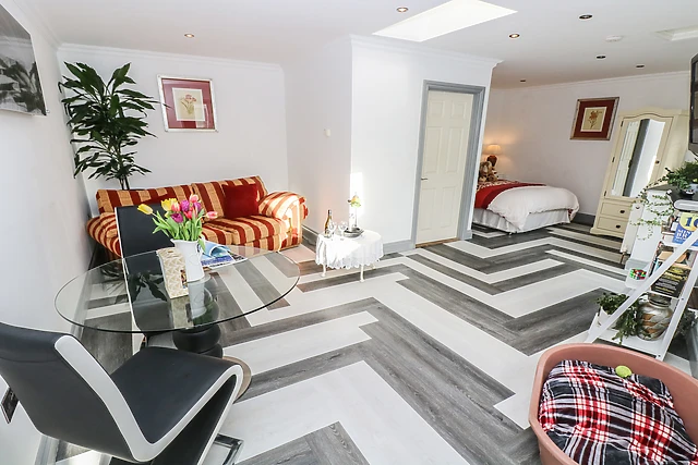 This apartment has an open plan living accommodation with a double bed, kitchen, dining area and sitting area. There is also a shower room and all beautifully furnished throughout, so you will have everything you need for a comfortable and quiet break away.