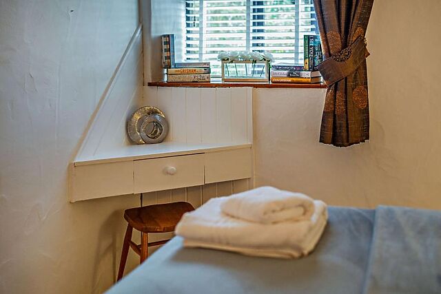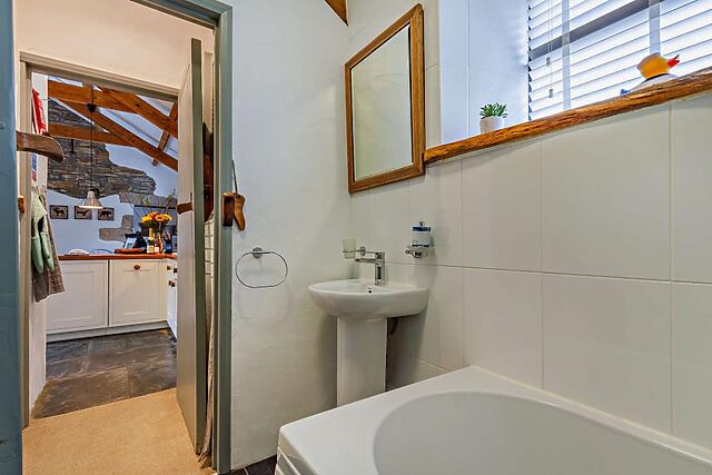 The fully-equipped kitchen is all ready for cooking up feasts, while the quaint dining area features a breakfast bar with views overlooking the front garden. Also on this floor is a king-size bedroom with exposed stone and beautiful features, offering a calm and tranquil stay.