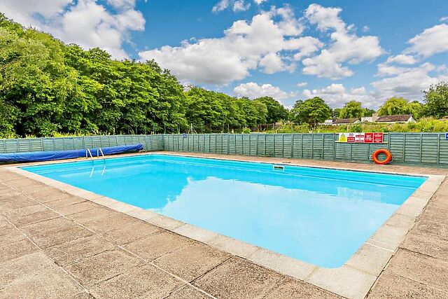 The complex also offers a tennis court, play area, and a heated outdoor swimming pool for summertime fun.