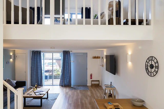The accommodation sleeps two guests in a king-size mezzanine-style bedroom, which can be converted to twin beds upon request.