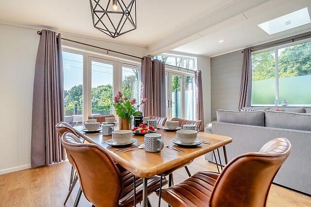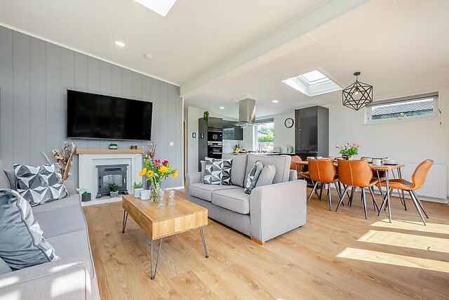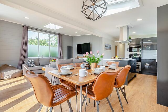 Let yourselves into the immaculate lodge to find chic accommodation to meet your needs perfectly. Leave your walking boots or flip-flops in the hall and head on into the generous, open-plan lounge/kitchen/diner.