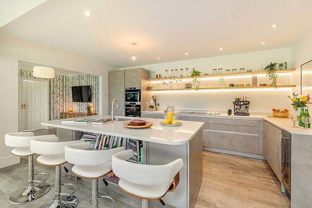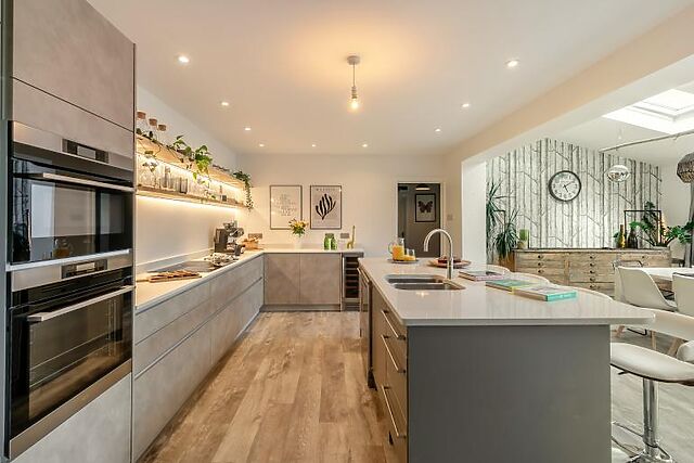The cosy lounge invites you to relax with its comfortable seating and Smart TV, ideal for a movie night. The open-plan living space, combining the kitchen, diner, and snug, is the social heart of the home.