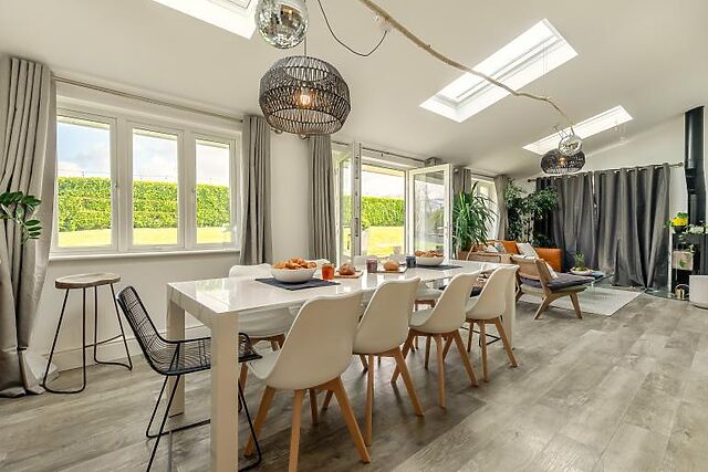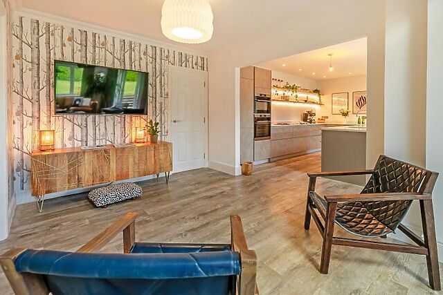 Step into the airy hallway and feel instantly at home. The cosy lounge invites you to relax with its comfortable seating and Smart TV, ideal for a movie night. The open-plan living space, combining the kitchen, diner, and snug, is the social heart of the home. The well-equipped kitchen has everything you need to prepare memorable meals.